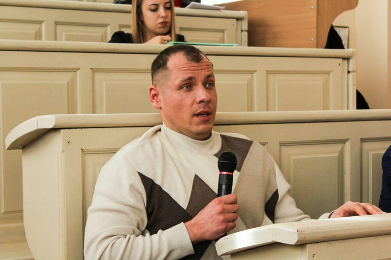 Особливо хочеться відзначити роботу кандидата юридичних наук, асистента кафедри теорії та історії держави і права Каріма Ємельяненка, який не лише ініціював проведення цього заходу, а й виступив його модератором.