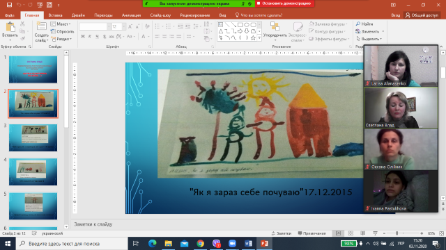 Учасники проєкту детально зупинились на обговоренні психологічних прийомів та технік в роботі з психотравмою дитини. Світлана Влад поділилась власним досвідом, прокоментувала доцільність застосування кожної техніки у відповідності до запиту дитини та надала рекомендації майбутнім психологам щодо психологічної інтервенції системи допомоги психотравмованим дітям.