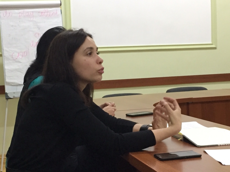 Спираючись на багаторічний досвід, Юлія окреслила коло проблем, пов’язаних з роботою з батьками дітей з особливими потребами, які дуже часто потребують не меншої психологічної підтримки, ніж їх діти. Потрібна постійна опора на сильні сторони дитини і родини в процесі психологічної допомоги – це, мабуть, найбільш важливий месседж, який наша гостя прагнула донести до учасників.