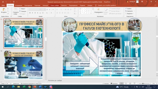19 жовтня 2022 року у межах профорієнтаційної роботи відбулася онлайн-зустріч доцента кафедри фізіології, біохімії рослин та біоенергетики Тетяни Анатоліївни Ткаченко з учнями випускного класу Ніжинської гімназії № 14, м. Ніжин, Чернігівська область.