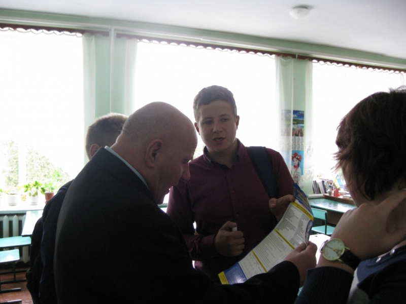 Учням була роздана віддрукована інформація про перелік напрямів, за якими здійснюється підготовка фахівців у НУБіП України, буклети про факультет ветеринарної медицини, листівки з інформацією про підготовчі курси та новостворену спеціальність 212 – Ветеринарна гігієна, санітарія і експертиза.