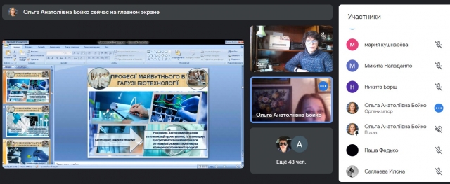 Доцент кафедри фізіології, біохімії рослин та біоенергетики, доктор біологічних наук Ольга Бойко разом з вчителем біології та хімії Галиною Потаповою провели у березні онлайн-зустріч з учнями 11 класів Криворізького ліцею №107 «Лідер» Криворізької міської ради.