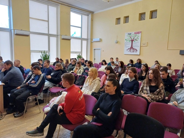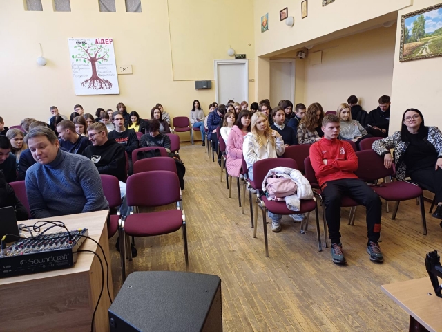 Також виступив студент 1 курсу факультету землевпорядкування, випускник ліцею, Павленко Яків, він поділився досвідом студентського життя, різними цікавинками та можливостями в навчанні, що доволі оживило учнів.