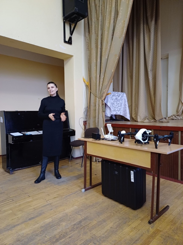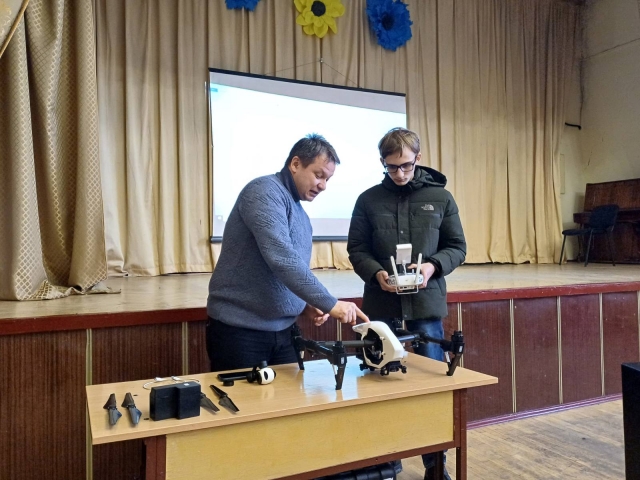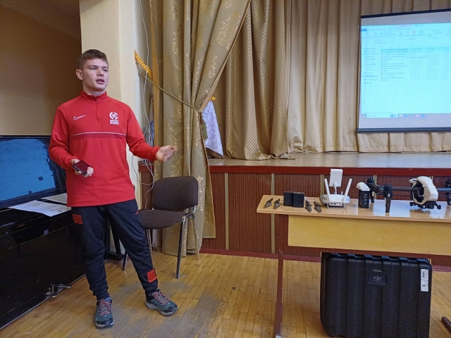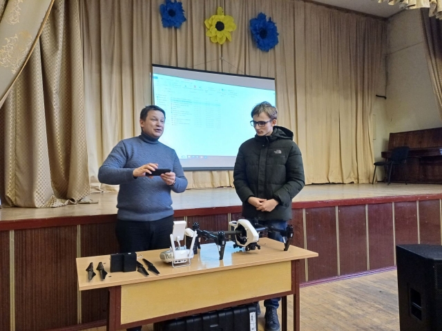 Для зацікавлення школярів доцент кафедри Бутенко Євген Володимирович розповів про безпілотні літальні апарати та залучивши зацікавлених юнаків, провів майстер-клас з їх використання. Учні дізналися про різні типи дронів, їхні технічні характеристики та можливості застосування в різних сферах. Викладач продемонстрував, як правильно керувати дронами, виконувати зйомку територій та аналізувати отримані дані. Це дозволило учням не лише отримати нові знання, але й відчути себе частиною великої професійної спільноти.