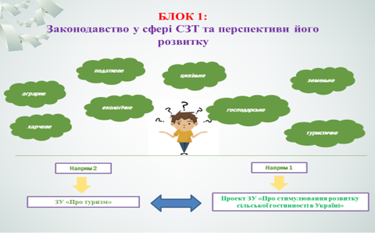 Для майбутніх слухачів Академії було розроблено і представлено орієнтовну структуру навчального курсу, який має охоплювати різнобічні аспекти правового забезпечення діяльності у сфері СЗТ. Зокрема, це: питання правового становища суб’єктів господарювання, які здійснюють відповідну діяльність, порядок надання послуг з розміщення, харчування туристів тощо, законодавчі вимоги до використання земель у сфері СЗТ, правове регулювання оподаткування доходів, отриманих у процесі цієї діяльності.