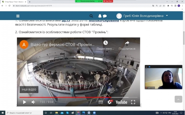 Під час проходження навчання он лайн, студенти мали змогу ознайомитись з навчальним відеоматеріалом, щодо особливості роботи сучасних молочних комплексів, технологічного процесу отримання молока коров’ячого, а також ознайомились з основними етапами виробництва консервованих м’ясних виробів.