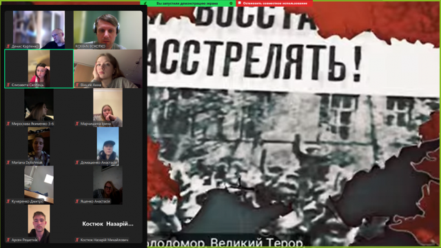 Зустріч завершилася обговоренням вражень студентів. Молодь поділилася думками про переглянуті матеріали, провела паралелі з нинішніми подіями в Україні, підкреслюючи, що боротьба з агресією московії та несправедливістю, як і 80 років тому, потребує єдності, мужності та віри в перемогу.