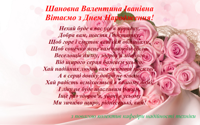 Привітання з днем народження к.е.н., доц. Мельник Валентину Іванівну 15 грудня 2023 року 08:30 - 08:30