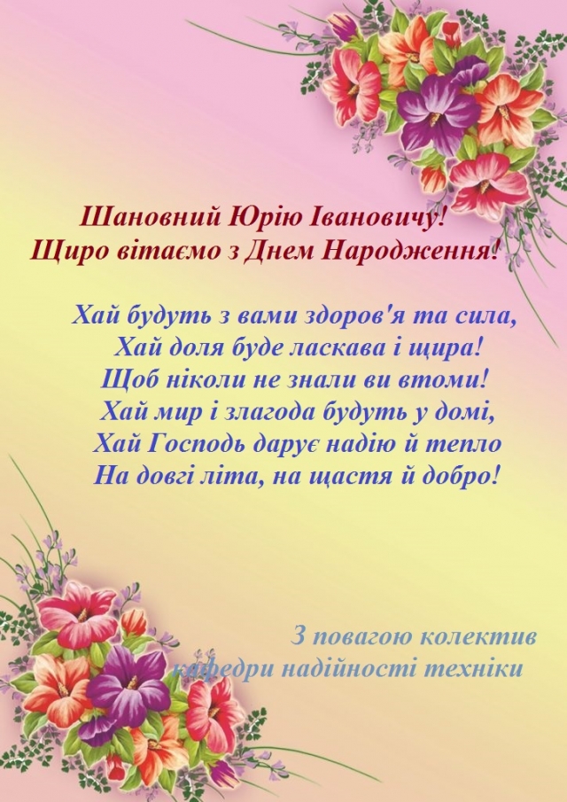Привітання з Днем Народження завідувача лабораторіями Лисікова Юрія Івановича 20 квітня 2022 року 10:32 - 10:32