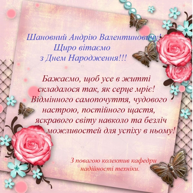 Привітання з днем народженням завідувача кафедри, к.т.н., доц. Новицького А.В. 13 грудня 2023 року 10:34 - 10:34