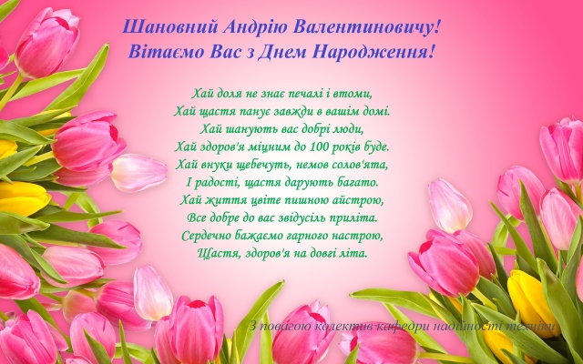 Привітання з Днем народженям к.т.н., доц., завідувача кафедри Новицького Андрія Валентиновича 13 грудня 2020 року 08:48 - 08:48