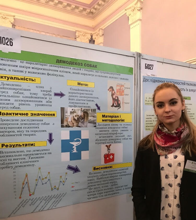 - По-перше: нещодавно я відвідала факультет ветеринарної медицини і поринула у світ знань і науки. Мені дозволили бути присутньою на практичних заняттях та лекціях з дисципліни «Паразитологія». Я навіть не думала, у порівнянні зі школою, що на такому високому рівні проходить навчальний процес. Мене зустрів заступник декана Василь Данілов і провів надзвичайно цікаву екскурсію по факультету. Надзвичайно приємно вражена матеріально-технічною базою факультету, клінікою ННВ Клінічний центр «Ветмедсервіс» і особливо музеєм анатомії. По-друге: уся моя рідня (батько, мама, бабуся) навчались у кращому університеті України – НУБіП! По-третє: високий рейтинг НУБіП України теж суттєво вплинув на мій вибір. По-четверте: університет розташований у мальовничому місці Києва, це «Голосієво», лісопаркова зона.