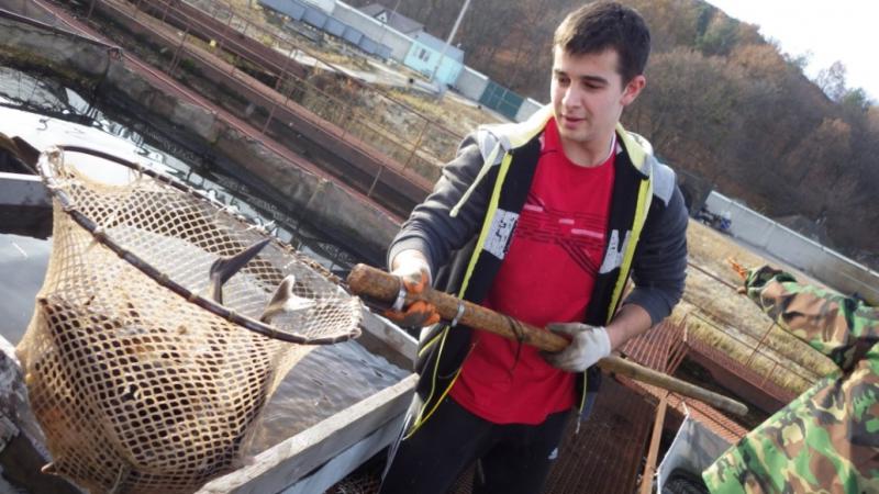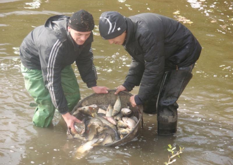 Випуск дволітків коропових риб у зимувальний став Немешаївської рибдільниці