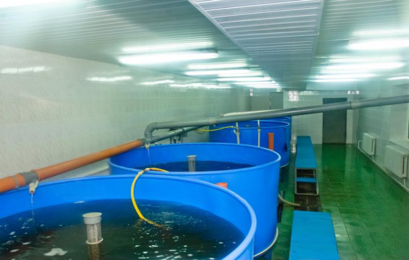 Експериментальна установка із зворотним водопостачанням у приміщенні інкубцеху ННВЛ рибництва кафедри аквакультури (с.м.т. Немешаїве)
