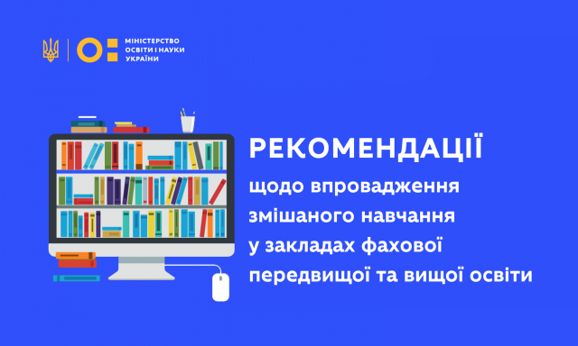 Міністерство освіти і науки розробило рекомендації щодо організації змішаного навчання у закладах вищої та фахової передвищої освіти. Рекомендації надіслані керівникам закладів та розміщені на сайті МОН.