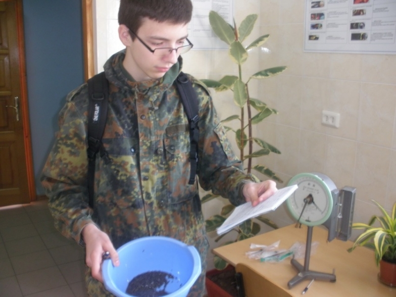 Фото 1. Артем Швець на практичних заняттях в ННВЛ рибництва кафедри аквакультури (смт. Немішаєво)