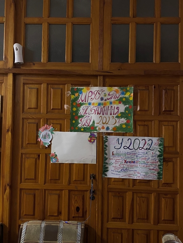 Також можна віднайти фліпчарт на якому студенти можуть побачити свої минулорічні побажання та мрії, а також залишити бажання на наступний рік.