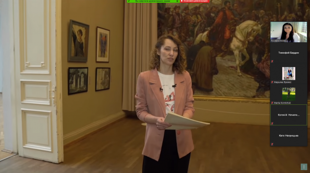 Наприкінці зустрічі куратор організувала он-лайн екскурсію по Національного художнього музею України, який вже довгий час знаходиться на реконструкції. Зокрема потрапили до зали художників шестидесятників до виставки «Модернізм в Україні» на якій ми змогли побачити картини відомого митця, який є одним з ключових художників ХХ століття, продовжувачем традицій модернізму, Григорієм Гавриленко.