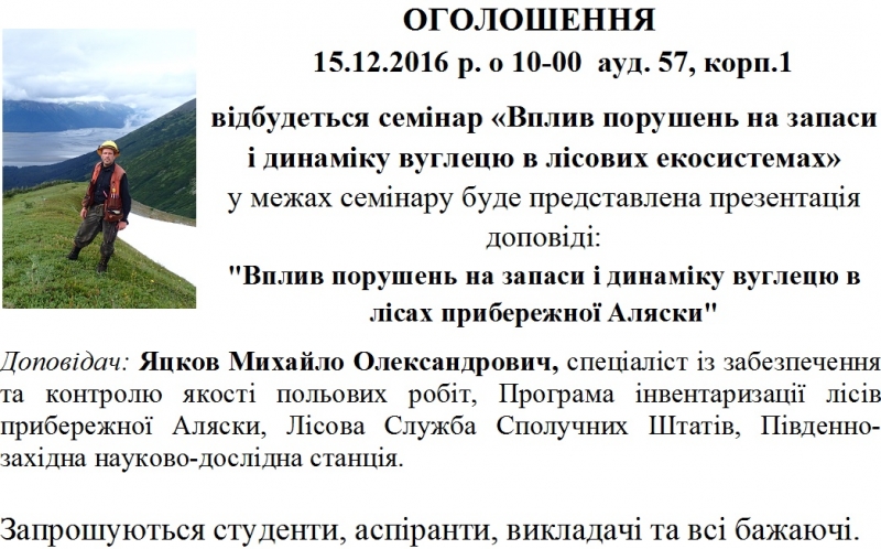 Семінар «Вплив порушень на запаси і динаміку вуглецю в лісових екосистемах 15 грудня 2016 року 02:00 - 02:00