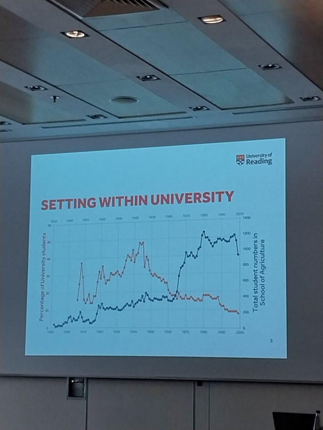 Продовжив розповідь про університет Рідінг керівник наукової діяльності школи сільського господарства і розвитку Simon Mortimer. Доповідь розпочав з того, що у 1892 році при університеті Oxford був створений коледж, який у 1922 році став окремою структурою – університетом Рідінг. До початку Великої вітчизняної війни кількість студентів за сільськогосподарськими напрямками зростала, але на даний час їх чисельність становить лише 10 % загальної кількості слухачів університету.