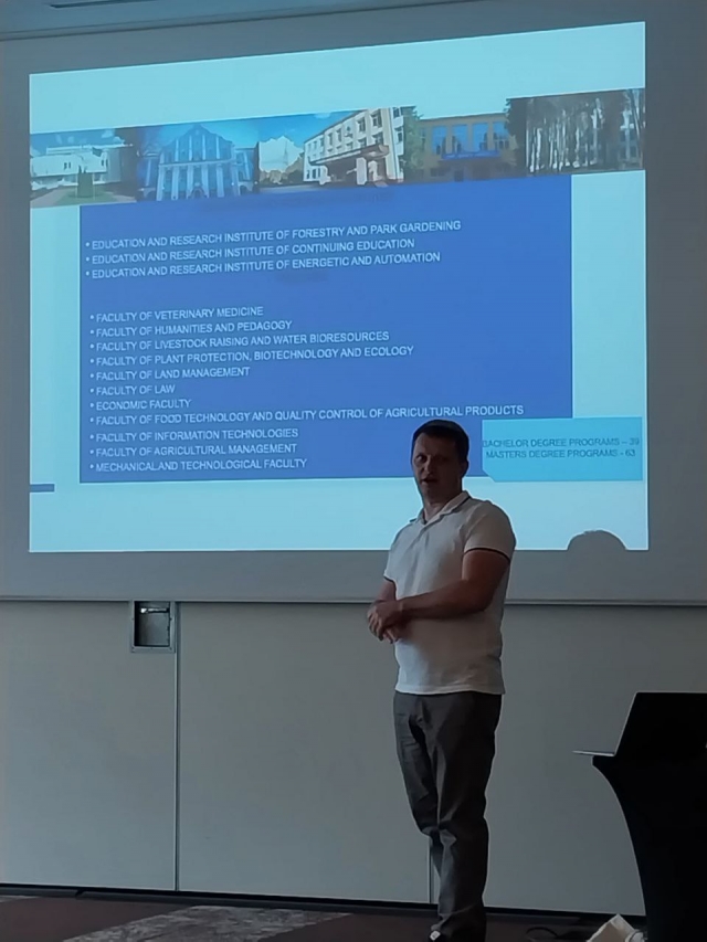 Директор навчально-наукового центру міжнародної діяльності Олександр Лабенко представив Національний університет біоресурсів і природокористування України. Ознайомив з розміщенням, структурою університету. Зазначив які місця займає університет в рейтингах країни та світу.