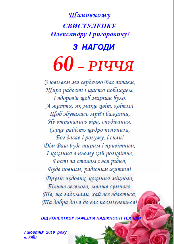 Шановному СВИСТУЛЕНКУ Олександру Григоровичу! З НАГОДИ 60 – РІЧЧЯ