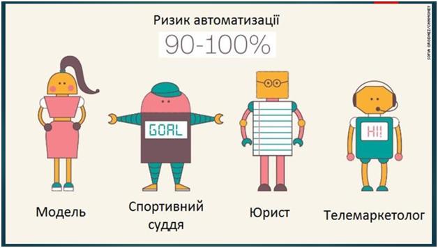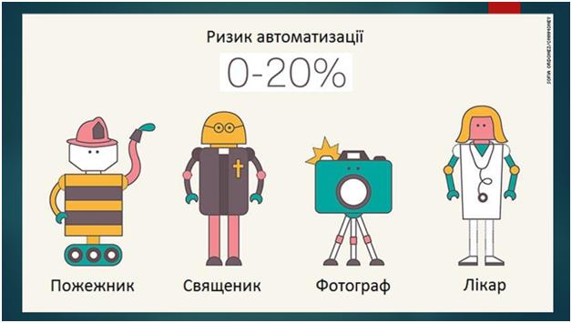 Важливим пунктом моєї доповіді став аналіз тих професій, які найбільш та найменш ризикують стати жертвами заміни роботами, водночас згадано й про важливий факт того, що роботи за рахунок свого існування призводять і до створення зовсім інших професій, що може стати важливим дороговказом у пошуках студентської молоді власного місця у професійній сфері.
