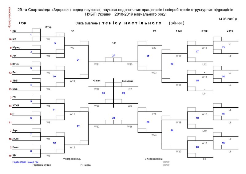 Спартакіада “Здоров’я” серед науково-педагогічних, наукових працівників і співробітників структурних підрозділів НУБіП України з тенісу настільного