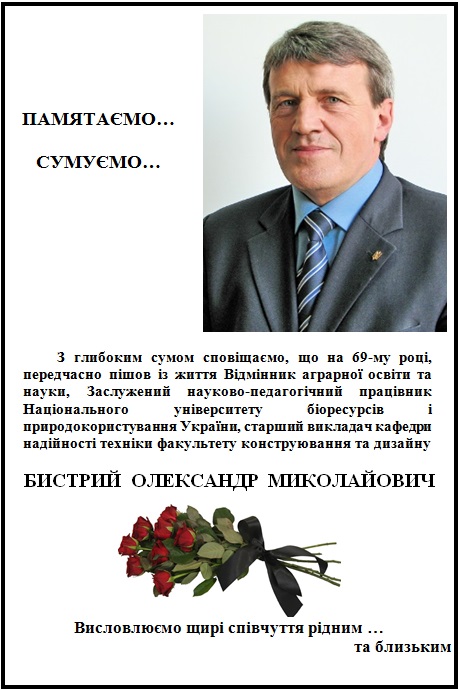 Співчуваємо з приводу передчасної смерті старшого викладача кафедри надійності техніки Олександра Бистрого 29 грудня 2023 року 10:59 - 10:59