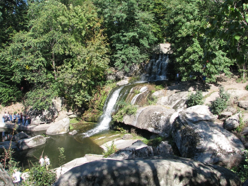 Однією з головних прикрас парку є фонтан Змія, що встановлений посередині Нижнього озера. З його широко розкритої пащі піднімається стовп води висотою майже 20 метрів! Ще одним природним чудом парку виступає великий водоспад, що розташований на висоті 18 метрів над землею, і стікає в мальовниче спокійне озеро, в якому плавають білі лебеді. Павільйон Флори – богині весни і всього рослинного світу, гармонійно поєднується з природою. Найбільш романтичним куточком парку є затишний «Острів кохання», що розмістився на Верхньому озері. Офіційна назва острова «Анти-Цирцея» добре знайома любителям давньогрецьких міфів. Грот «Каліпсо», який здається створений самою природою. Вхід до нього розділений на дві половини гранітною підпорою, яка ніби підтримує його і надає йому цілком природного вигляду. Таких цікавих і романтичних об’єктів на території парку знаходиться надзвичайно багато. Тут можна зустріти безліч статуй давньогрецьких богів, мислителів та героїв, серед яких Сократ, Аристотель, Еврипід, Гомер, Паріс, Орфей та багато інших.