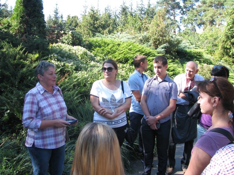 Враховуючи багаторічну співпрацю між науковцями дендропарку та ННІ лісового і садово-паркового господарства, а також з метою проведення фахової, змістовної і цікавої екскурсії у якості екскурсовода для нас було призначено наукового співробітника парку І.Л. Дениско. Тому користуючись нагодою, хочемо їй висловити щиру подяку за цікаву і змістовну розповідь про історію створення парку, його дендрологічну складову та архітектурні рішення.