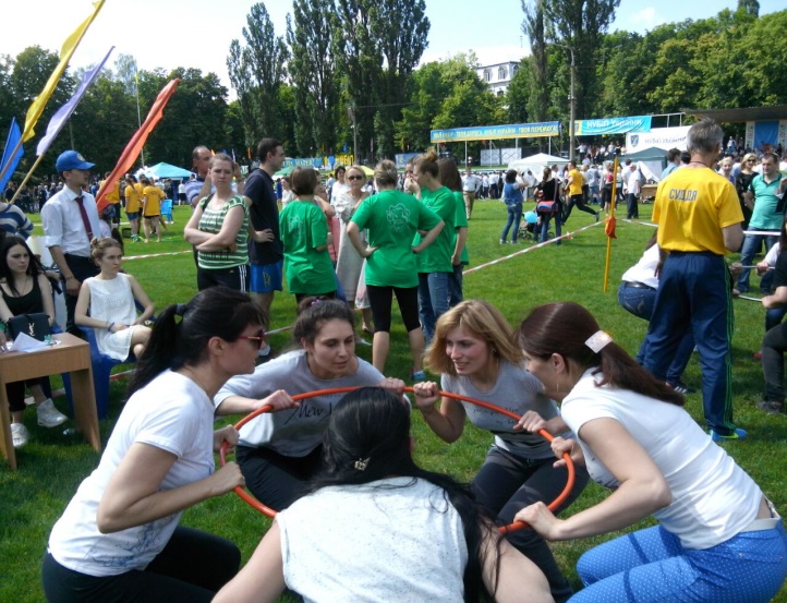 За ініціативи ректора НУБіП України Станіслава Ніколаєнка на святкуванні «Дня університету» (27 травня) започатковано проведення спортивних змагань за участі студентів та викладачів вишу. Це об’єднує колективи кафедр в єдину команду, стимулює зміцнення дружніх стосунків. Кожен, хто взяв участь – вже переможець, адже найбільша нагорода – гарний настрій. Від кафедри аквакультури у змаганнях із колективного присідання прийняли участь асистенти – Ірина Кононенко та Віта Шумова, які гідно підтримали команду факультету на шляху до перемоги (фото 1).