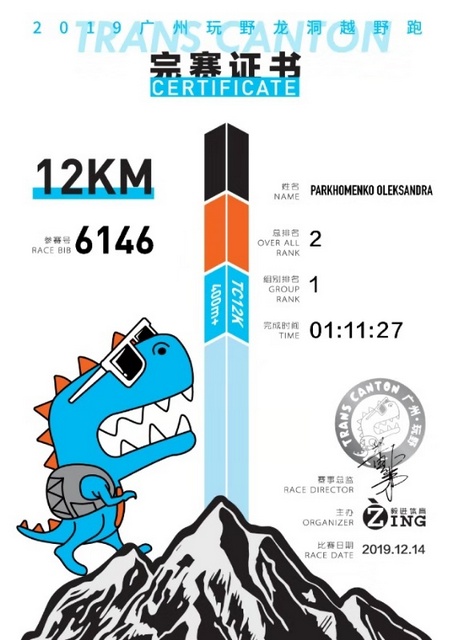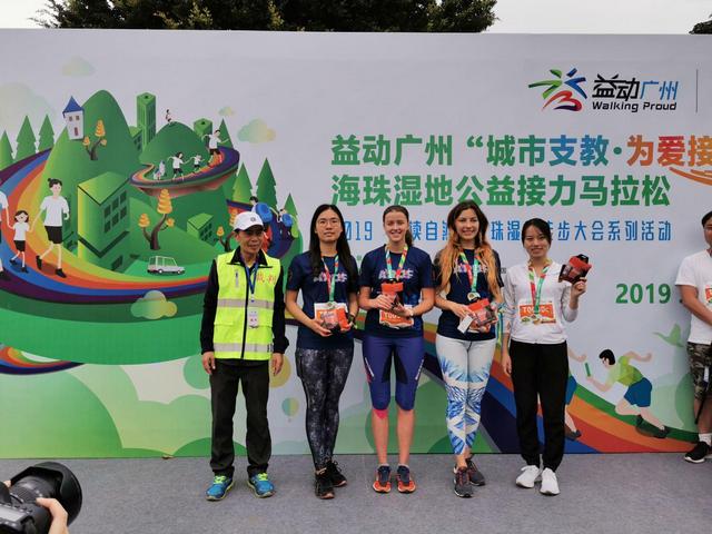 2 місце на дистанції 21 км естафетного напівмарафону зайняли представники клубу радіоспорту з міста Гуандон в складі інтернаціональної команди з чотирьох дівчат: Олександри Пархоменко, 1-ий етап (м. Київ, НУБіП України), 2-ий етап Анастасії Годунової, (Росія), 3-ий і 4 етапи китаянки Фенг Ву, Іджун Чен (персональні опікуни-перекладачі Олександри і Анастасії на час їх перебування у Китаї), номер команди Т0030.