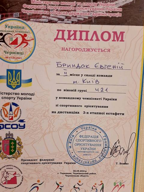 Пройшло всього 4 дні і Євгеній Бриндак знову завоював 2 місце на чемпіонаті України тепер вже у змаганнях з рогейну (12 годин) в складі команди міста Києва і знову підтвердив норматив майстра спорту України.