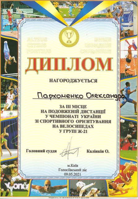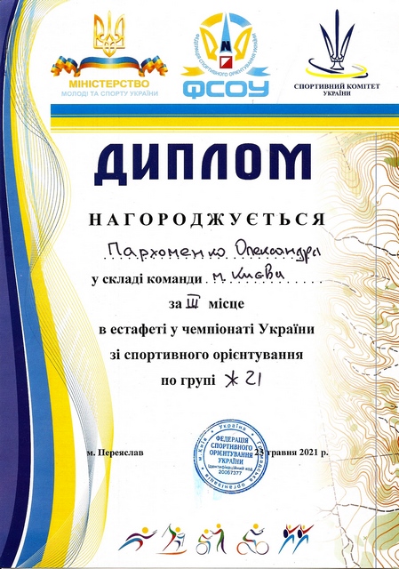 Серед жіночої еліти 3 бронзові медалі у змаганнях на скороченій, середній і довгій дистанціях здобула Олександра Пархоменко – асистент кафедри комп’ютерних наук факультету інформаційних технологій. Карта з довгою дистанцією по групі Ж21: