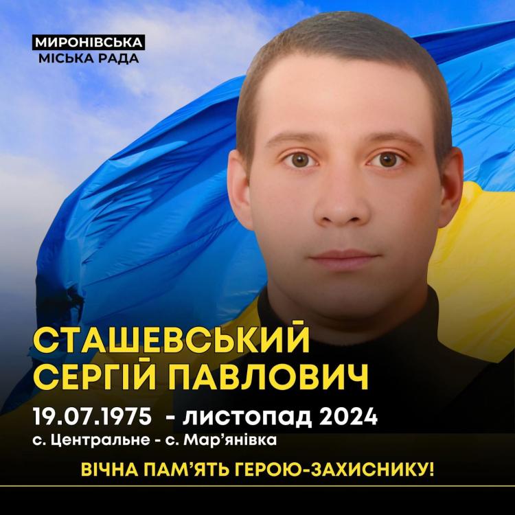 Сповіщаємо про непоправну втрату - у боротьбі за свободу та незалежність України загинув, молодший сержант СТАШЕВСЬКИЙ СЕРГІЙ ПАВЛОВИЧ