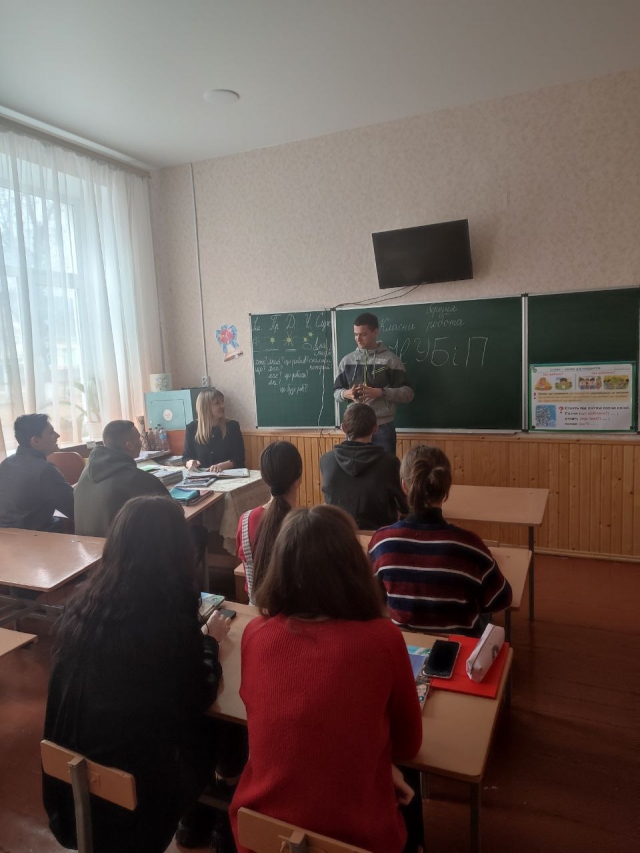 СТУДЕНТ 6 ГРУПИ 1 КУРСУ КУЧЕРЕНКО ДМИТРО ПРОВІВ ПРОФОРІЄНТАЦІЙНУ РОБОТУ ДЛЯ УЧНІВ 10-11 КЛАСІВ В МІСТІ БАХМАЧ