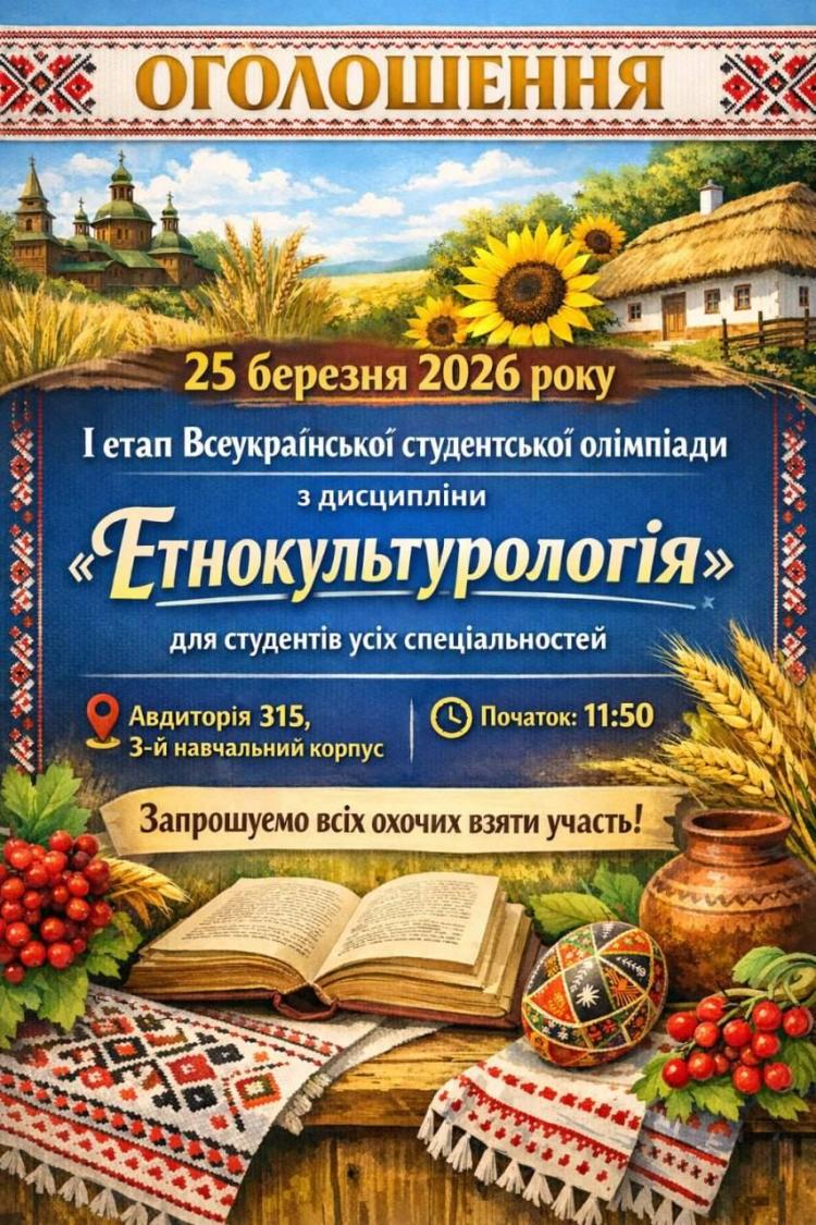Запрошуємо взяти участь у студентській олімпіаді з Етнокультурології 📝