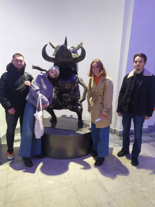 Виставка «Галерея сталевих фігур» вже підкорила Європу, а в Україні відкрилася вперше. Ідея її створення належить польським сталкерам. Деталі для своїх перших залізних фігур ініціатор і автор проекту Хосе Маріуш Олійник збирав прямо на звалищі металобрухту поблизу Варшави, даючи, по суті, мотлоху друге життя в якості тепер уже предметів мистецтва. Студенти групи ознайомилися з експозицією, яка налічує більше сотні металевих фігур. На створення кожної знадобилося понад тисяча елементів і до восьми місяців ручної праці кількох майстрів. Серед експонатів з шестерінок, редукторів, гальмівних колодок, ланцюгів, болтів і гайок були представлені фантастичні тварини, герої коміксів, ігор, серіалів, а також копії авто у повний розмір - Bugatti, Ferrari, Harley-Davidson. Розглядати ці фігури можна було нескінченно, адже всі вони зберігають пам'ять про ті речі, з яких були зібрані. І за рахунок цього виглядали дуже незвично.
