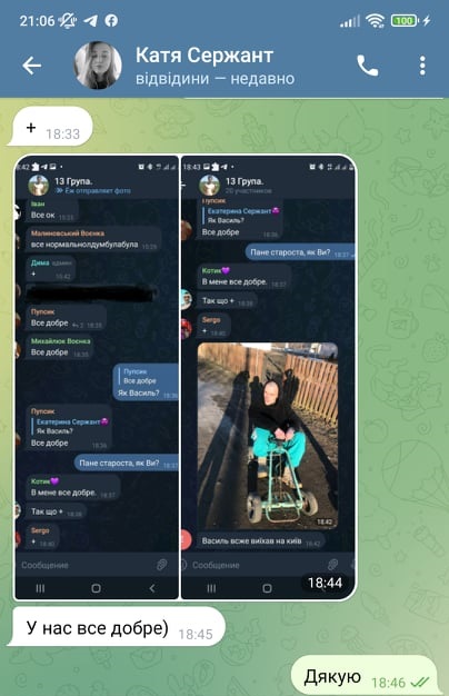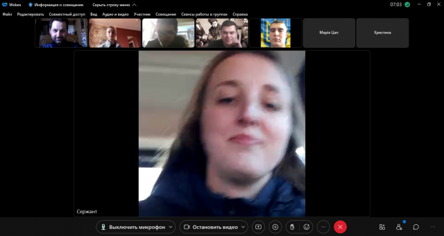 Під час зустрічі заступник старости групи Катерина Сержант доповідає про ситуацію, наявність зв’язку, відвідування занять та місця локації студентів.