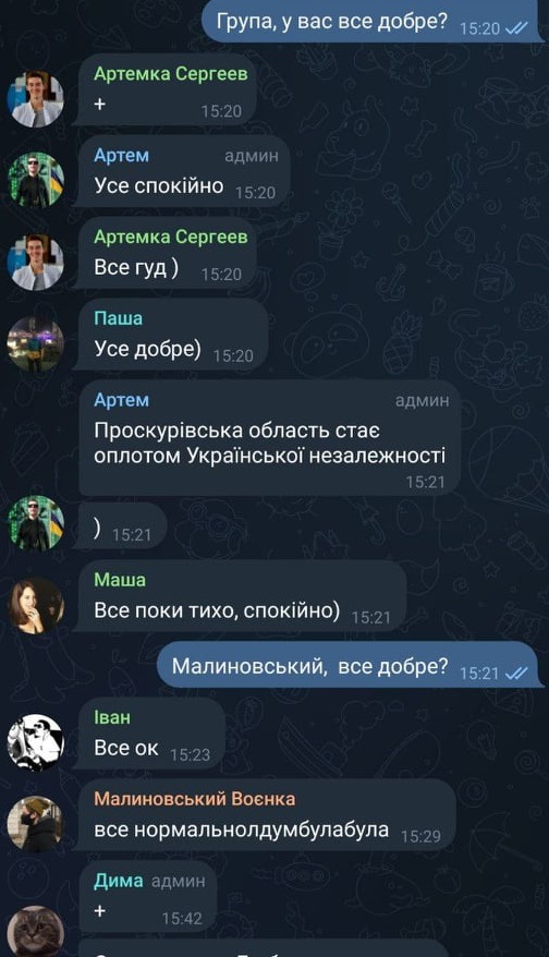 Щодня студенти групи зв’язуються між собою в телеграмі та підтримують постійний зв'язок з куратором, старшим викладачем кафедри хірургії і патофізіології ім. акад. І.О. Поваженка Тарасом Савчуком.
