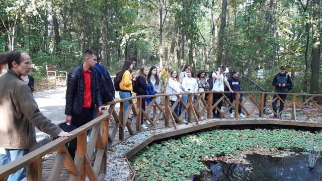 Перед початком дистанційного навчання, проводжаючи бабине літо, відвідали Ботанічний сад НУБіП України студенти 6 групи 1 курсу факультету ветеринарної медицини разом із своїм куратором Тетяною Мазуркевич. Надзвичайно пізнавальну та цікаву екскурсію провів кандидат біологічних наук, старший науковий співробітник, завідувач лабораторії інтродукції та селекції деревних рослин Ботанічного саду НУБіП України Станіслав Слюсар, який ознайомив відвідувачів з історією створення ботанічного саду, його структурою, чудовими ландшафтами.