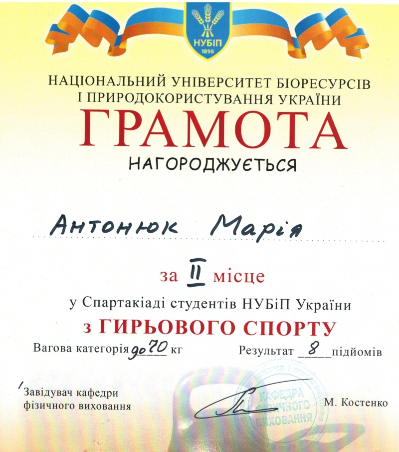 Серед жінок маємо два 2-х місця: Єнєва Ганна — у ваговій категорії до 60 кг, Антонюк Марія — у ваговій категорії до 70 кг. В командному заліку наш факультет посів 4 місце.