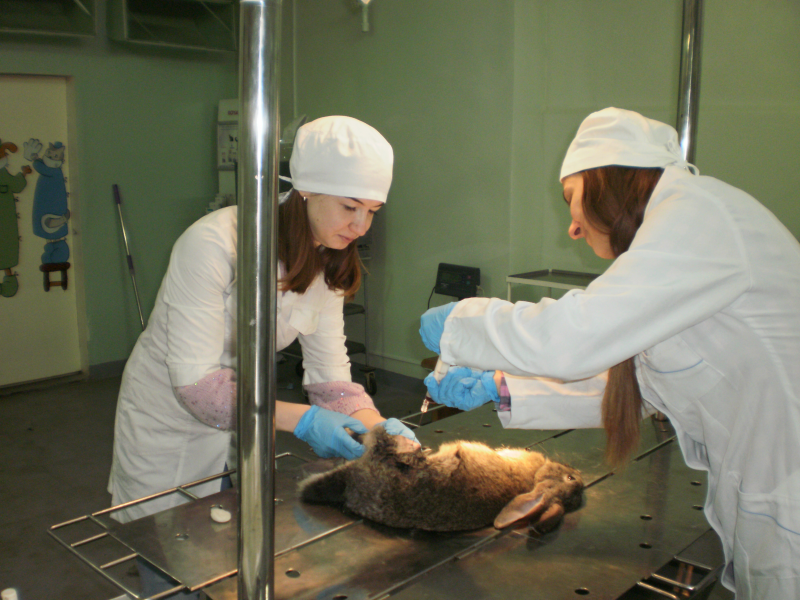 Студенти магістерської програми «Клітинні технології у ветеринарній медицині» відібрали кістковий мозок у кролів для проведення наукових досліджень