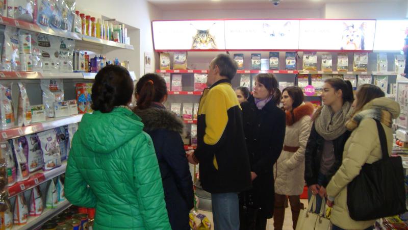 Під час виїзного заняття під керівництвом к. вет. н., старшого викладача кафедри фармакології та токсикології факультету ветеринарної медицини Деркач Ірини Михайлівни магістранти мали змогу провести детальний порівняльний аналіз асортименту товарів фармацевтичного та медичного призначення у ветеринарній аптеці ВАТ ВНП "Укрзооветпромпостач", зоомагазині, а також одному з магазинів мережі «Медтехніка» (м. Київ, вул. Васильківська).