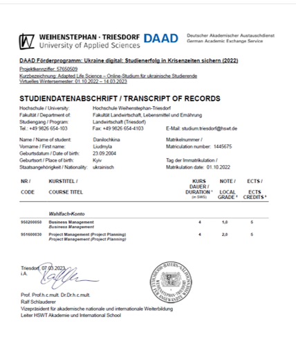 СТИПЕНДІАЛЬНА ПРОГРАМА В УНІВЕРСИТЕТІ ВАЙЄНШТЕФАН-ТРІЗДОРФ “ВІРТУАЛЬНИЙ СЕМЕСТР”, ЩО ФІНАНСУЄТЬСЯ АКАДЕМІЧНИМ ФОНДОМ DAAD