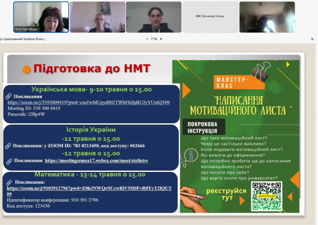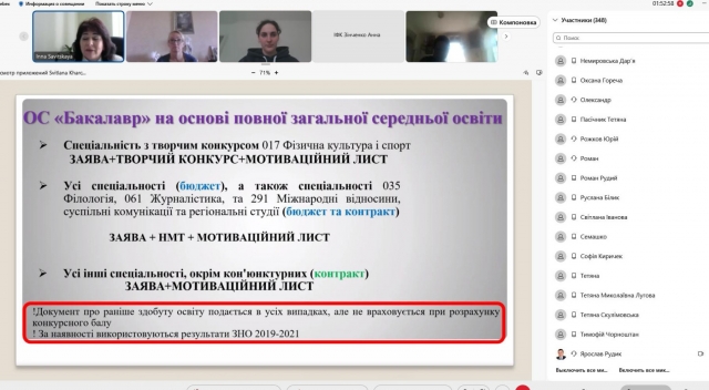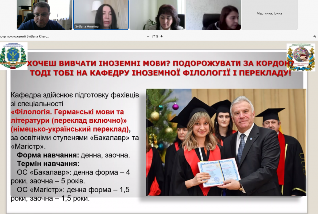 Це підтвердили і відеоролики про спортивні секції, гуртки кафедри фізичного виховання, творчі колективи та студії кафедри культурології, які працюють на нашому факультеті. Зустріч продовжилася у форматі цікавого діалогу між старшокласниками, батьками та працівниками факультету, тож усі зрозуміли: дружня команда працівників і студентів гуманітарно-педагогічного факультету з великою радістю чекає на нових студентів та забезпечить їх високим рівнем знань та натхненням. Бажаємо всім мирного неба над головою! Із нетерпінням чекаємо на вас!