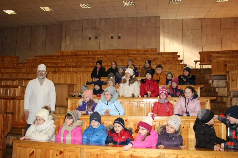 Кафедра біохімії і фізіології тварин ім. акад М.Ф. Гулого 06 лютого 2018 року приймала учнів 3-В класу спеціалізованої школи № 197 ім. Дмитра Луценка Святошинського району м. Києва. Професор Трокоз В.О. розповів учням про наш університет та факультет ветеринарної медицини і був їхнім гідом. За сприяння декана, академіка М.І. Цвіліховського, завідувачів кафедр, професорів В.А. Томчука, О.П. Мельника та Н.М. Сороки, а також завідувача ННВ Клінічний центр "Ветмедсервіс" В.В. Соломона школярі поринули у захоплюючий світ ветеринарної медицини. Вони разом із доцентом кафедри анатомії, гістології і патоморфології тварин ім. акад В.Г. Касяненка М.М. Стегнеєм відвідали музей анатомії, де побачили скелети носорога, жирафи, пітона та багато іншого не менш цікавого та екзотичного, оглянули навчальні лабораторії;