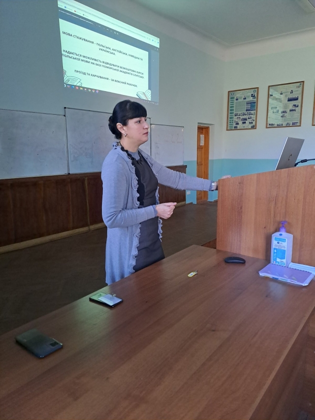 Метою заходу було ознайомлення студентів із міжнародним проєктом гуманітарно-педагогічного факультету програмою «Подвійних дипломів», що ґрунтується на угоді про співпрацю НУБіП України з Поморським університетом в Слупську (Республіка Польща). Згідно з документом, студенти після успішного здобуття освітнього ступеня бакалавр отримують державні дипломи українського та європейського зразка.