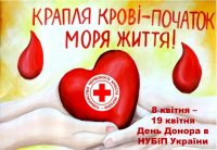 Враховуючи велику потребу лікувально-профілактичних закладів м. Києва у крові, її компонентах і препаратах, для своєчасного надання трансфузійної допомоги постраждалим військовослужбовцям, запрошуємо всіх бажаючих взяти участь у благодійній акції «День донора», що проходитиме для нашого факультету 8 квітня з 10:00 до 14:00 у читальній залі гуртожитку № 10, що за адресою: вул. Генерала Родімцева, 7а.